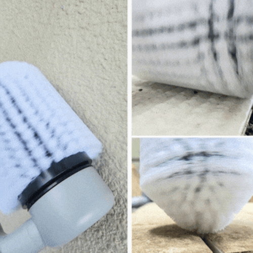 - カビ・水アカが溜まりやすいタイルの目地や床の凹凸に対し、ブラシが垂直に強くアプローチ。掻き出し性能にこだわり、力いらずで頑固な汚れを分解します。